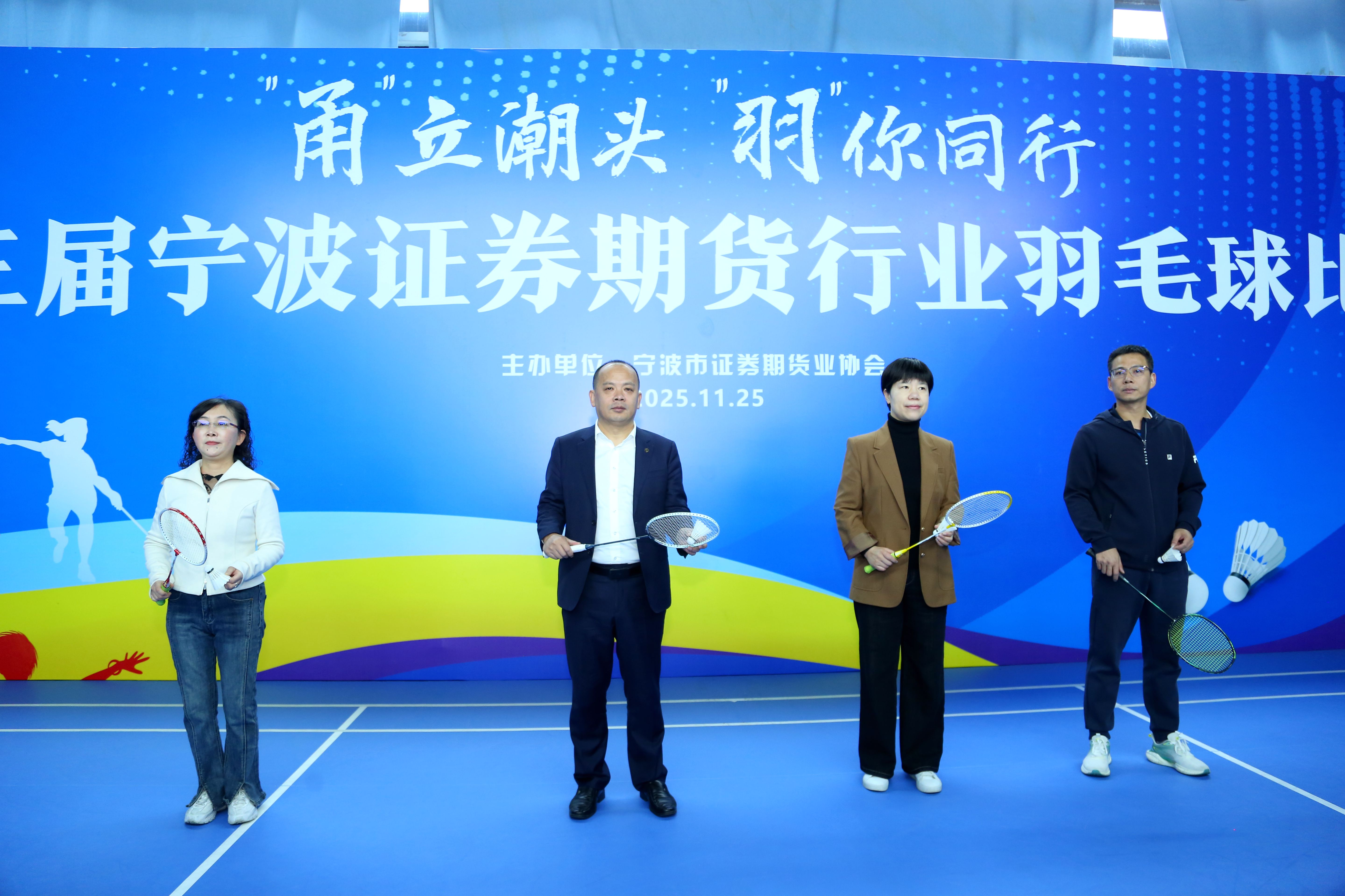 2025年11月25日,第三届宁波证券期货行业羽毛球比赛在宁波国际会展中心顺利举办。本届比赛以“‘甬’立潮头 ‘羽’你同行”为主题,旨在弘扬中国特色金融文化,促进行业交流互动,增强行业凝聚力与向心力,共吸引行业120余名从业人员积极参与。