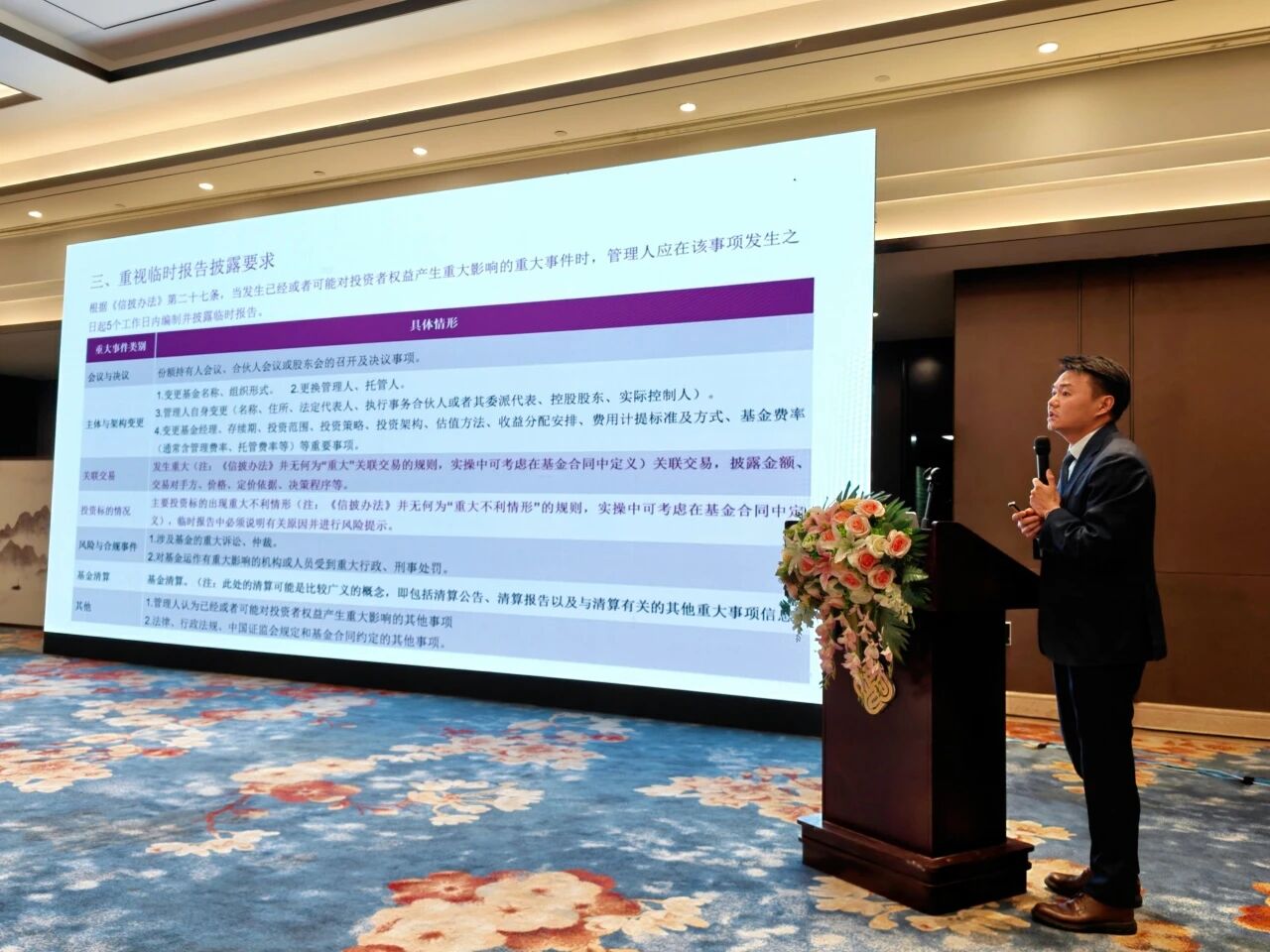 培训结合中基协、证监会典型监管案例,剖析私募基金信息披露的合规要点与违规风险,明确诉讼情况、被投标的不利事项等需及时披露,杜绝隐瞒遗漏。