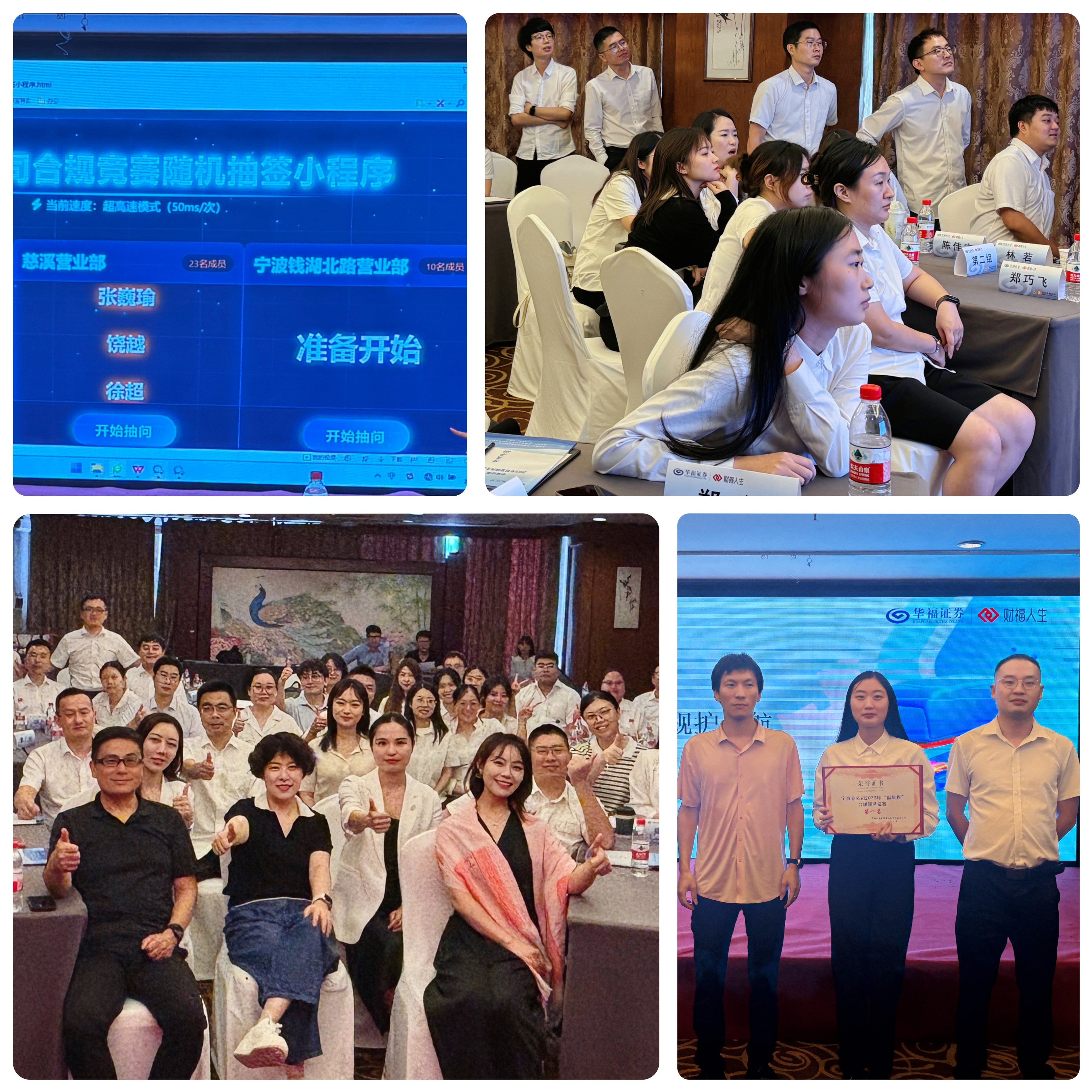 为落实公司总部“福航程”智慧合规风控创新年活动要求,华福证券宁波分公司于9月5日举办了“福航程”专题合规培训及知识竞赛活动,强化合规管理,提升员工合规意识与执业能力。