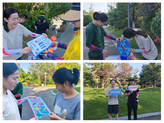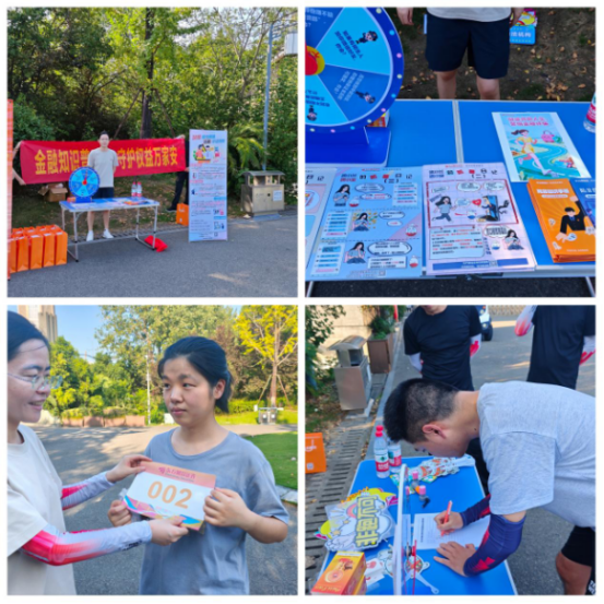 跑步活动结束后,工作人员为完成参赛者发放完赛徽章及活动纪念品,并围绕本次活动主题“警惕股市黑嘴,远离非法荐股”向参赛者展示相关易拉宝、宣传折页,而最受瞩目的当属转盘趣味问答环节。
