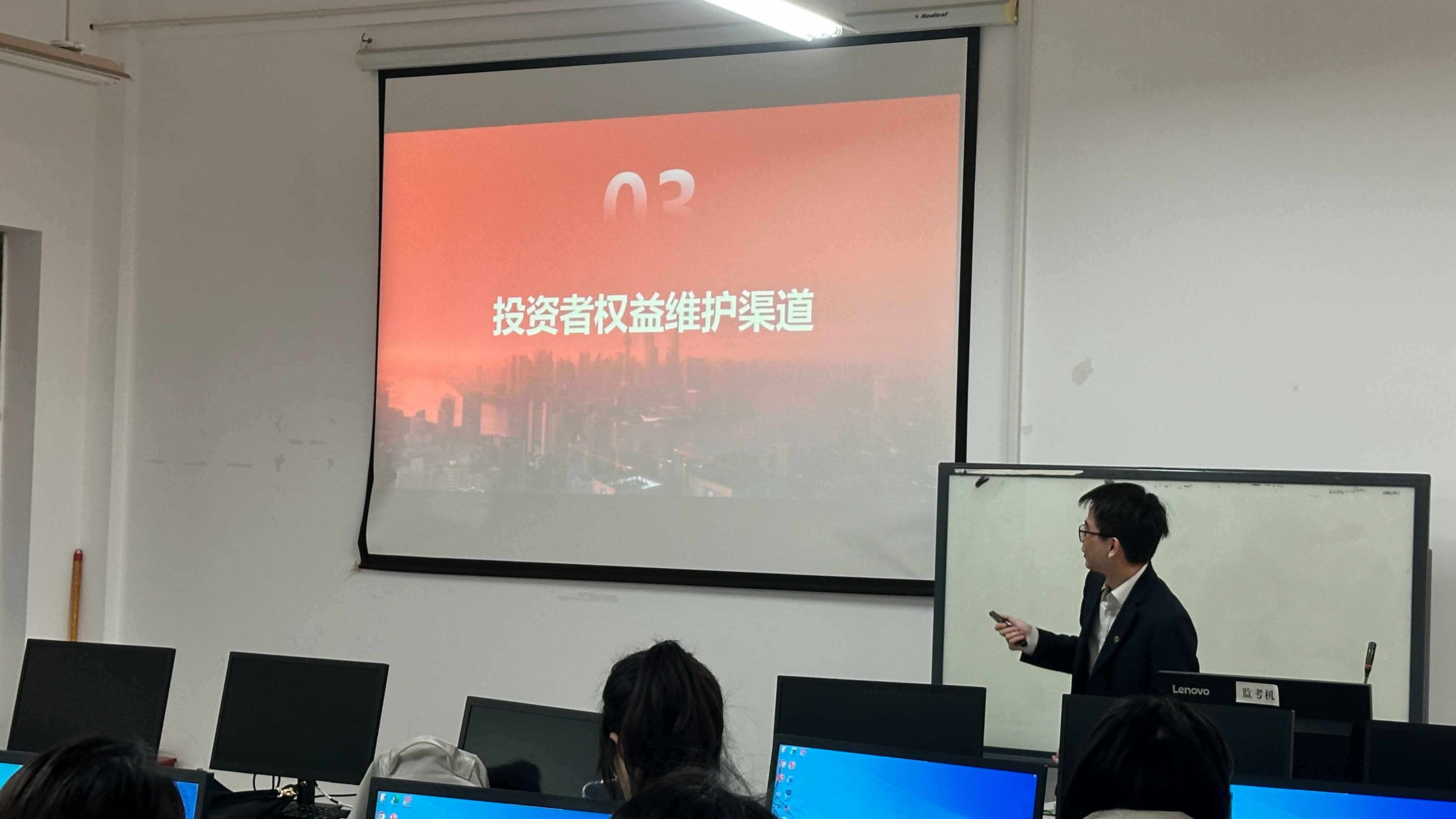 为进一步丰富投资者教育内容,活动还专门设置了投资者权益保护专题环节。讲师结合真实投资场景,详细讲解中小投资者享有的股东权利,以及在权益受到侵害时的维权途径与注意事项,帮助学生厘清自身权益边界,掌握基础维权方法,切实提升自我保护能力。
